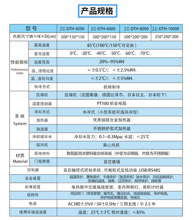 4. 制冷系统采用法国泰康、日本日立松下、德国比泽尔压缩机,稳定高效 。